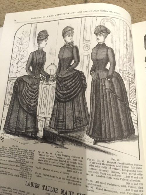 I’m thinking about using the middle skirt for my inspiration, though I also really like the one on the left. This is a picture from a reproduction of an 1886 Bloomingdales catalogue, belonging to my mom. I love the online resources but it’s so amazing to flip through the catalogue. Anyway, I definitely want an overskirt reminiscent of the two In the picture—I have TV368 (below) for a pattern.