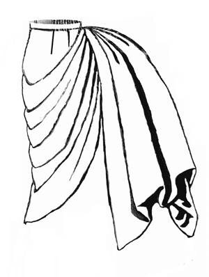 “A tape must be sewn to the point and jointed to the belt (waistband). There is danger of the pocket being so narrow at the top that the hand cannot be inserted, though the pocket was cut plenty large enough.”