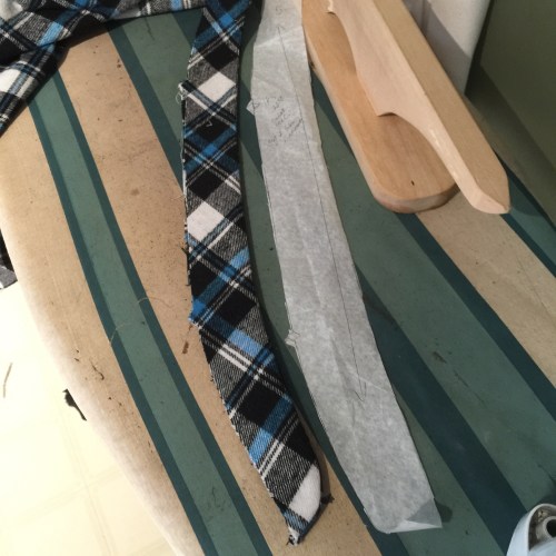 I picked up this fabric a little after Christmas, when it first went half price. Good thing I did—it was gone within a few days of that. It’s the same fabric as my plaid skirt, just in a different colourway. I bought it for Tyo, since she’s been enjoying her red flannel so much, but as soon as I got it home my husband pounced on it.
