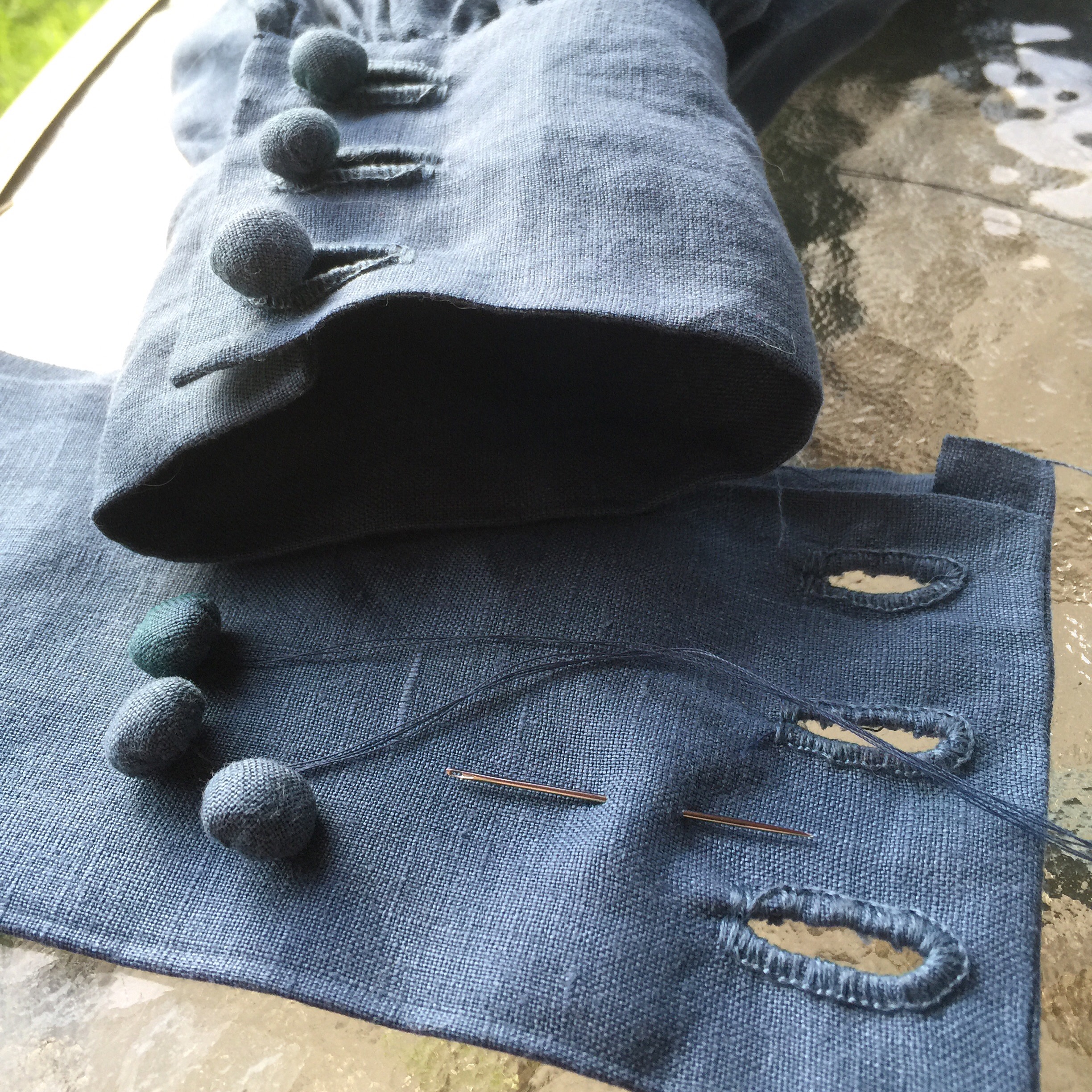 You did a marvelous job on the shirt, and I’m incredibly impressed with how much hand sewing you were willing to do on it. I think my favorite details are the fabric ball buttons and hand-sewn buttonholes.