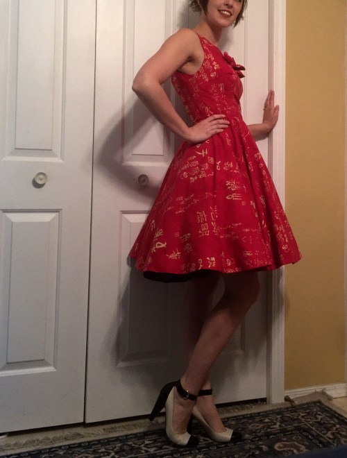 I was happy with most of my alterations but did have a few minor tweaks to the bodice, so it wasn’t a wasted test run. I added pockets to the side seams (yay!) of the skirt but they’re a little low (boo!) so I’ll fix that next time.