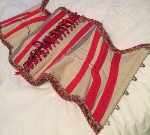 The guts are not pretty; this is my first attempt at applying tape for bone covers and… Well, I think it will be functional. And I forgot the waist stay, despite it being clearly included from basically step one of the instructions. D’oh. (Oh, and I did not follow the construction instructions, either, so that’s all me, too.)
