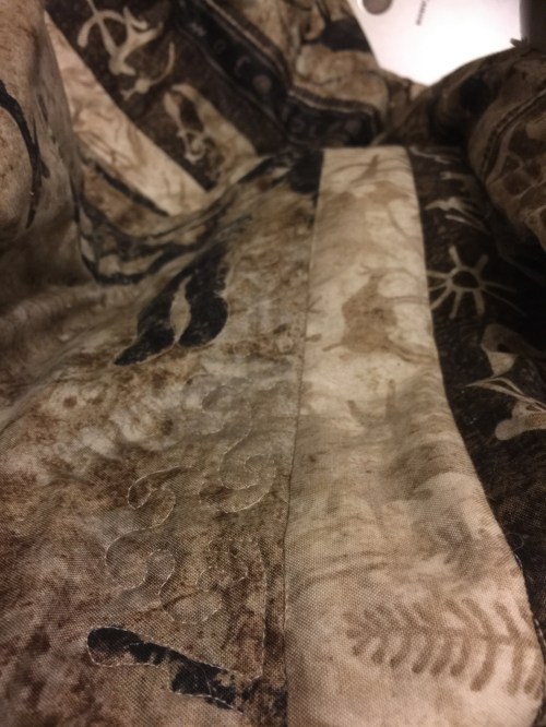 I quilted in the ditch along all the major lines and then went to town with some VERY rough and ready free motion spirals and things.