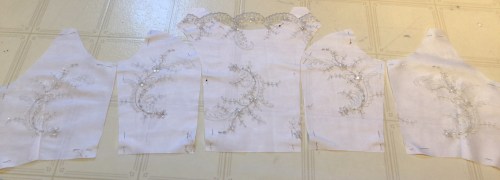 A fabric came in at work. Specifically, a beaded bridal lace. Look, I dunno what fancy bridal fabrics YOUR Fabricland gets, but mine is not the fancy store. We don’t see this stuff often.