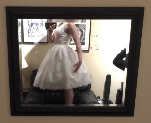 It is pretty! I’m not one to wear a white dress myself. I’d get it dirty too fast, perhaps slop something on it. Perhaps I’d dye it blue and then wear it around the house, twirling as I clean, blue rubber gloves on of course!