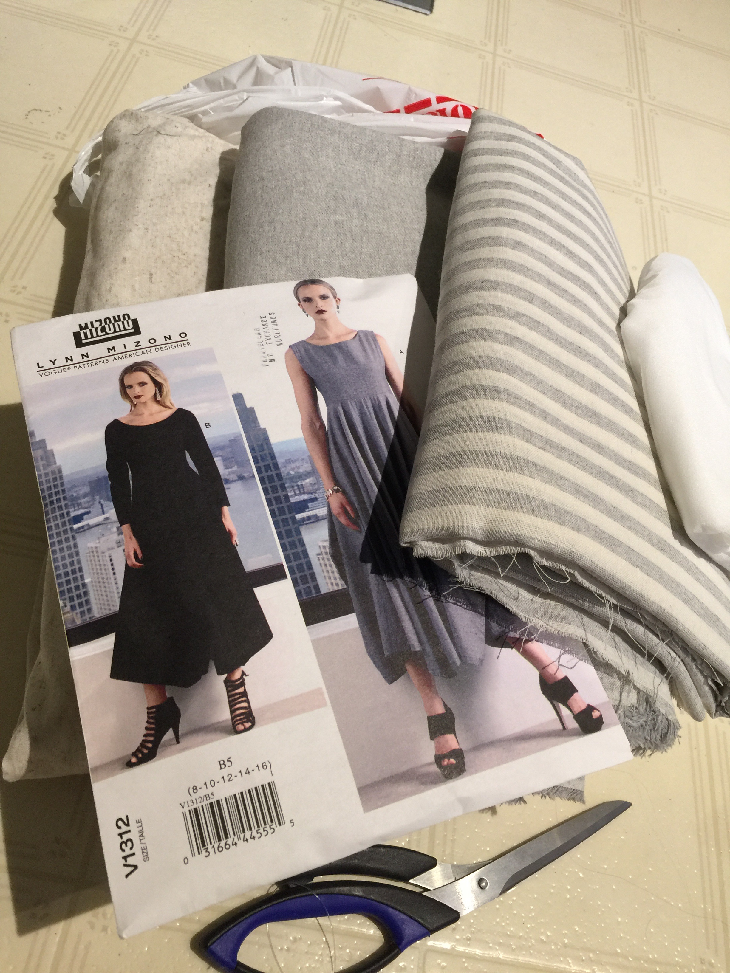 And then I happened to be flipping through the book and stumbled on Vogue 1312. Very unlike either of my previous light grey dresses. Sold!