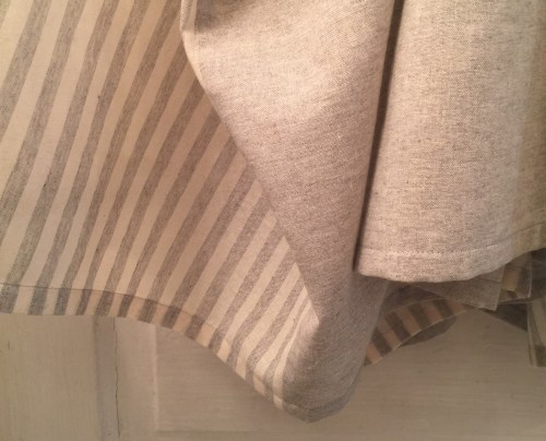 All in all pretty happy. What a fun shape, and it feels springy without being something I’ll have to wait months to wear (unlike these red heeled sandals I just found at Value Village.) And I had barely used up half my project budget on this dress, so I added a second on the way in a marled linen-blend jersey (left in the first pic)—I’ve been warned the skirt gets quite heavy in jersey, but it’s lightweight so we’ll see how that goes.