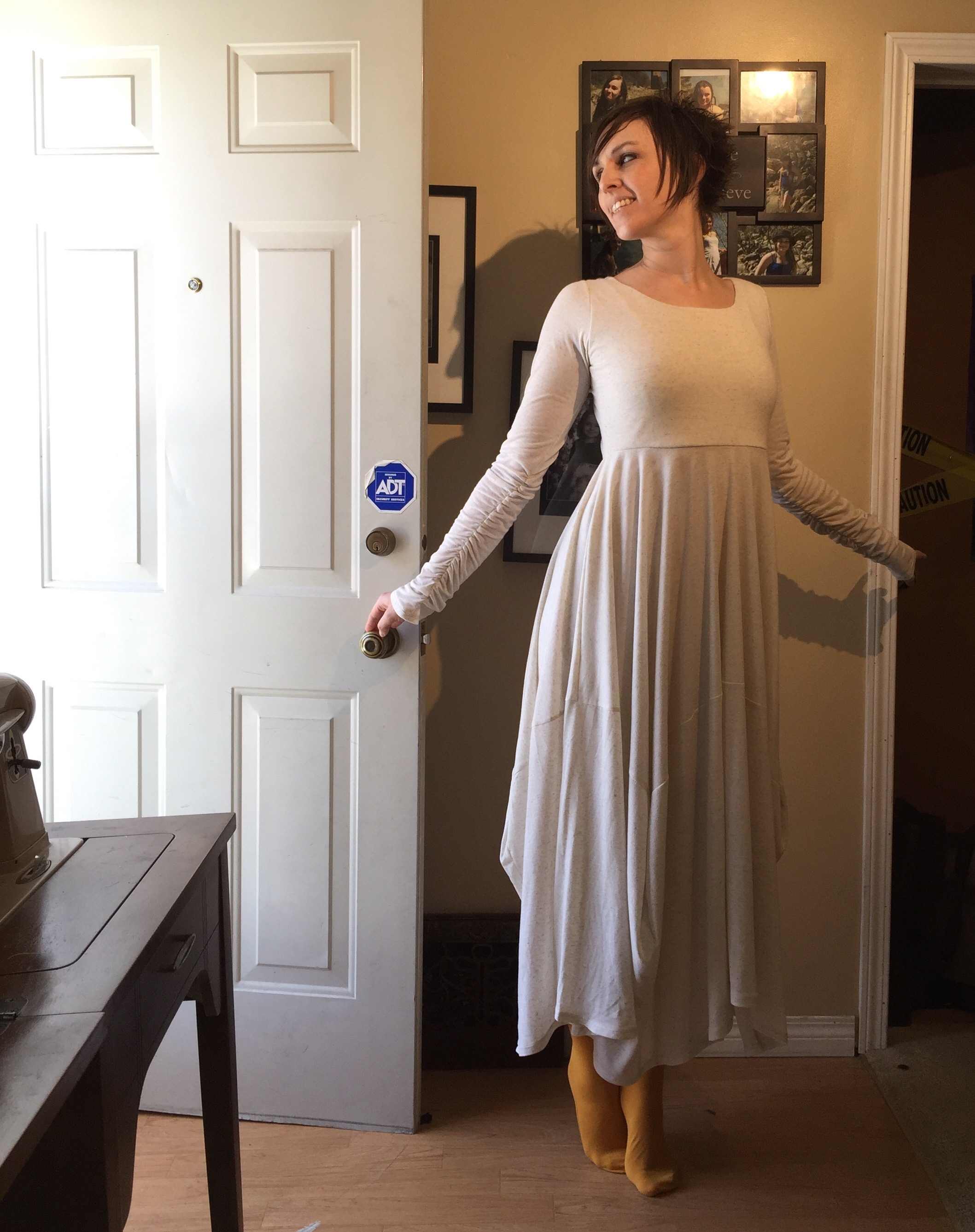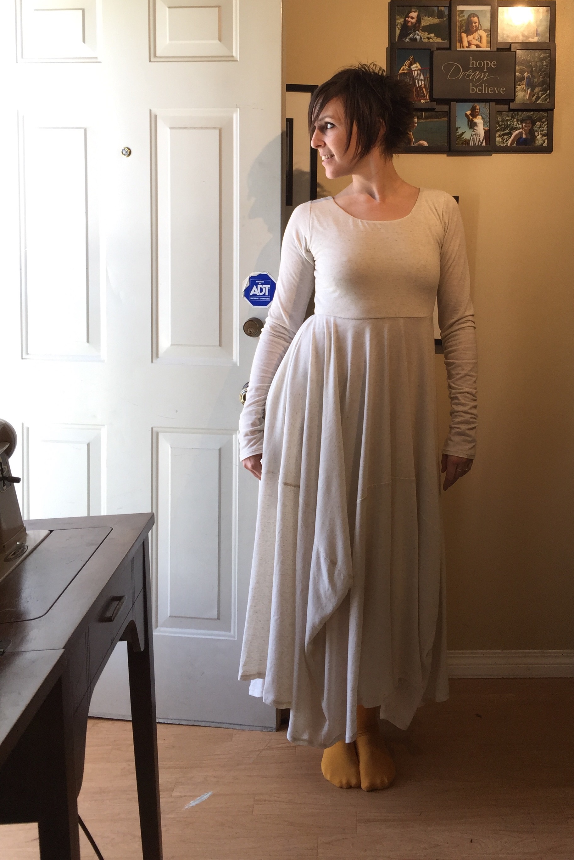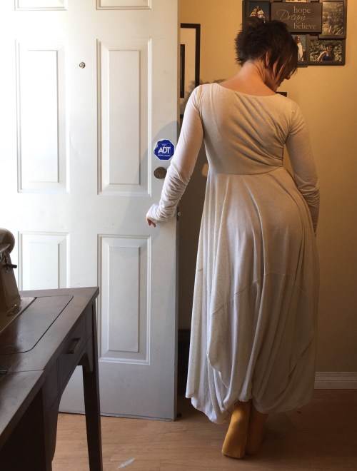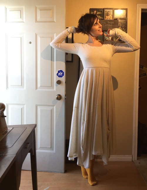 We’ve been watching The Last Kingdom on Netflix and this is reminding me, in a completely-not-historically-accurate way, of mediaeval shifts and linen undergowns. And it seems to demand silly ballet poses, as well. I was completely at a loss as to the right shoes, hence the sock feet.