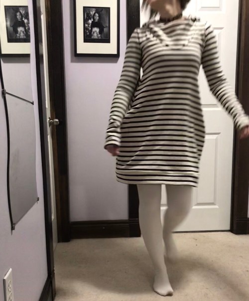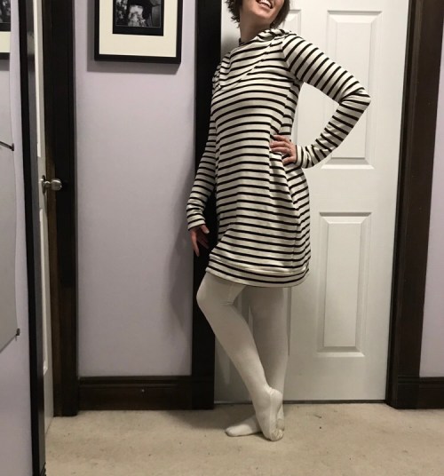 My mom’s coat is almost done—just needs buttons and the hem finished—so I took some time to play around. I had pre-washed this stripey end of heavy French Terry back before Christmas, thinking of a Paprika Patterns Jasper sweater-dress. But time was at a premium and then I realized that stripes plus princess seams could, um, be a little bit of a headache. Plus I was not at all sure I’d have enough fabric.