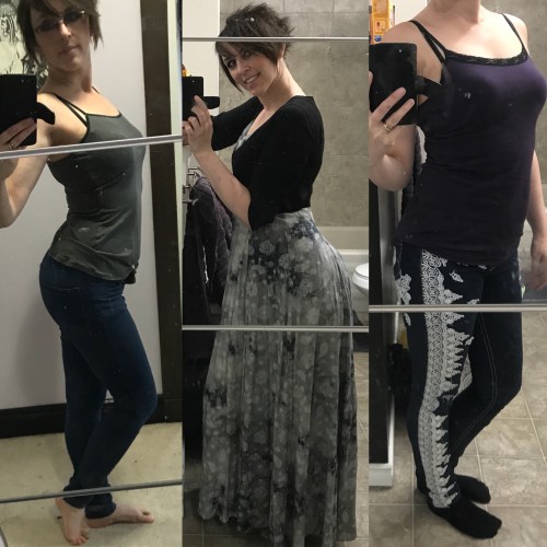 there were a few things I pulled out I’d been afraid to try, thinking they were too small. Mostly, thankfully, I found they still worked, though it was a bit traumatic to retire the last of my first generation of me-made jeans. (Except the very very first pair, because although they’re in tatters the SUPER stretchy denim still fits)