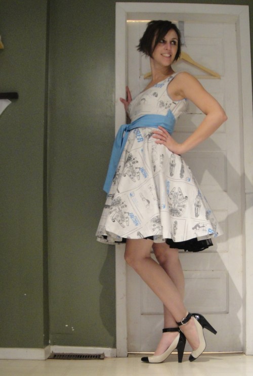 Third is a bit more subtle. Projects that would boost your skills and try out new products were encouraged. Projects that get people excited were, too. Which, as you probably can guess, means it was fun to make a lot of dresses. Sometimes stupid, crazy, fancy dresses. With a strict two week deadline (and keep in mind I was working two jobs for most of this span, so limited sewing time at home) it was hard to tackle really involved projects like coats, or to muslin things. But a quick, fun dress? Perfect!