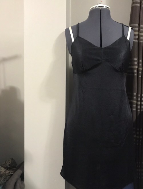 After getting those out of the way, I stumbled upon a remnant of black lingerie knit (nylon tricot) I picked up shortly before the store closed down. I’ve been meaning to make a black slip for a while—basically since I made this one, um, four years ago.