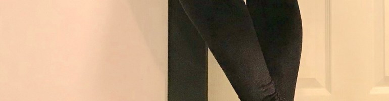 What stretch velvet is a little lacking in is lengthwise stretch, so they weren’t very tall, only just over my knees. That’s fine, I added a cuff at the top—which made a handy place to attach some gripper elastic without it being as obvious as if it’s right at the top.