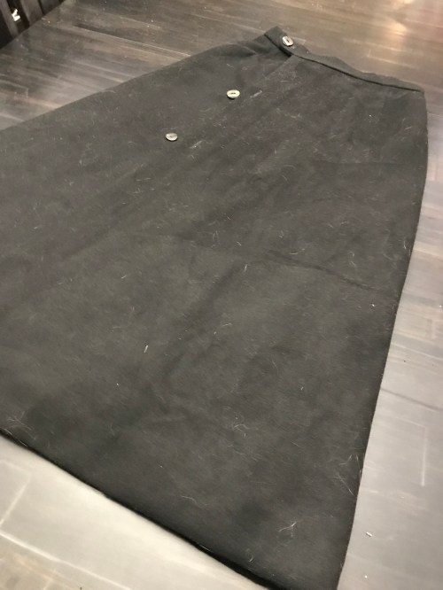 The larger size was a good call, since this is basically outerwear and needs more ease (I also didn’t overlap it quite as much as it technically should). I like the length, as well. However, I think a slightly fuller cut would have been a good idea—this one flaps open a bit more than ideal while walking. On the other hand, the wider it gets the less warm the skirt is.