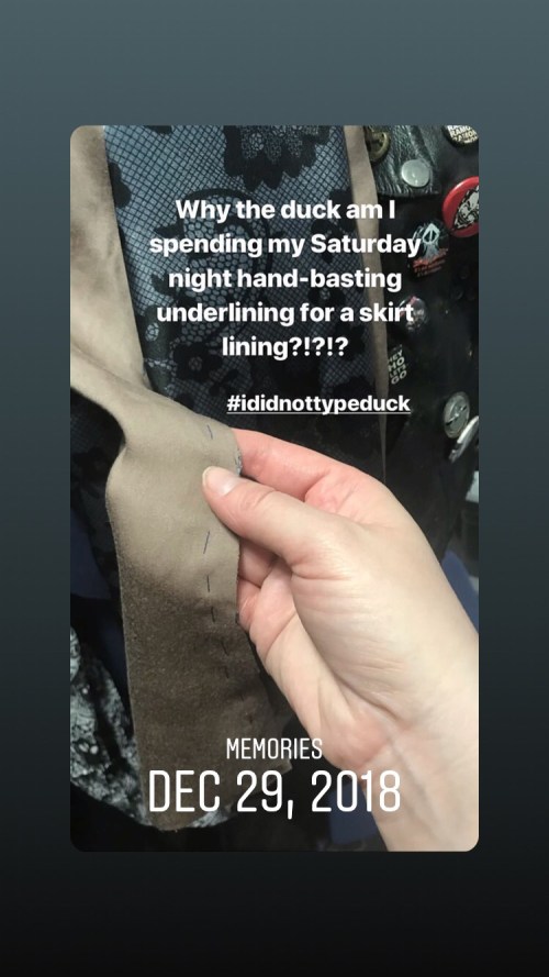 Then I made the Red Lace Coat, two years ago. Now this is also a long coat, but as I wore it last winter, I realized that while the thinsuate interlining and denser (if polyester) coating fabric make it significantly warmer than my grey coat, the slightly shorter and full-circle skirt made it significantly less warm around the legs. A tricky conundrum—potentially solved by a long, custom walking skirt.