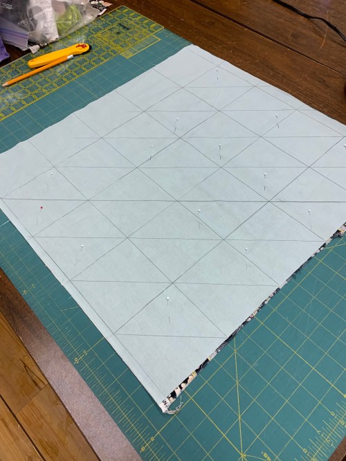 - Making half-square triangles in a giant grid and then cutting them out after. That was pretty fun.