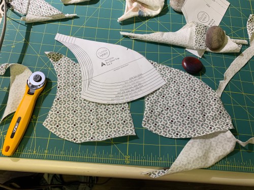 One of the best things about a bra project for me right now is that I could lay out the fabric on the little counter in my basement and cut without having to bend over! Not that there weren’t still issues (as you can see in the above photo) but bending over the dining room table to cut things out has become quite a chore. And the short little seams were easy to sew without getting short of breath, which is another issue I’m having.