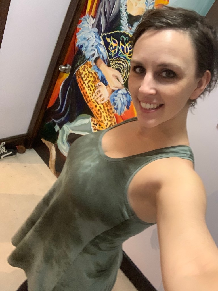 My size has changed a wee bit since I last made this tank, but this fabric has lots of stretch so I wasn’t too worried about the bust (and no way I was taking time to trace out a new version). I did add some flare to the waist and hip, and at the CB below the waist since I had to add a back seam to fit the pattern on my remnant. I may have actually made it a bit too swingy, if that’s possible.
