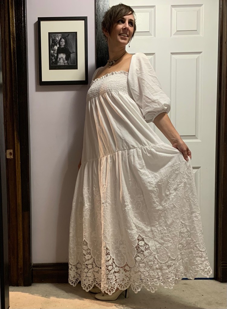 What a gorgeous sun dress! It is flowy and comfy and who cares if it breaks a so-called fashion “rule.” You are a creator, which gives you the power to break any rule you want to break – including the arbitrary no-white-after-Labour-Day rule. So go forth and break! You look fabulous!
