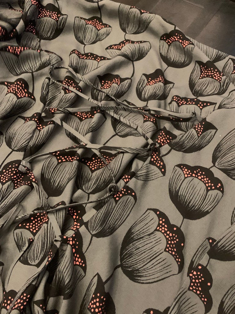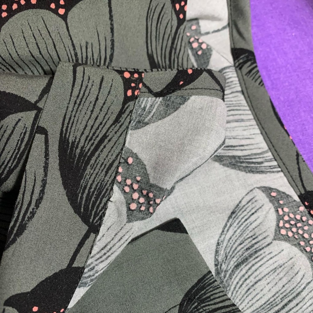 The pattern has three separate bust size options, and I thought the instructions for helping you choose the right one were really good—this is something I can struggle with sometimes, especially the last few years when my measurements are all over the place. I wound up going with the “mid size” option, and no complaints although I might shave a tiny bit off the fullness. That’s an easy fix though. I also went with the inseam pockets, which maybe aren’t ideal for a soft and drapey fabric like rayon, but I want pockets more than I mind a little bit of pulling, generally.