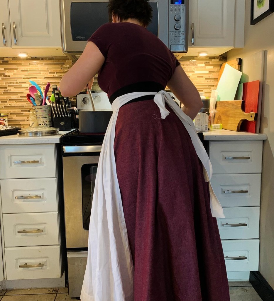 But, I still did kinda want an apron. A nice full one to wear while cooking (which, much as I try to avoid it, is still something I end up doing with distressing regularity.) and keep my fancy skirts or dresses clean… or just to make the tedium of domesticity a little bit less irksome.