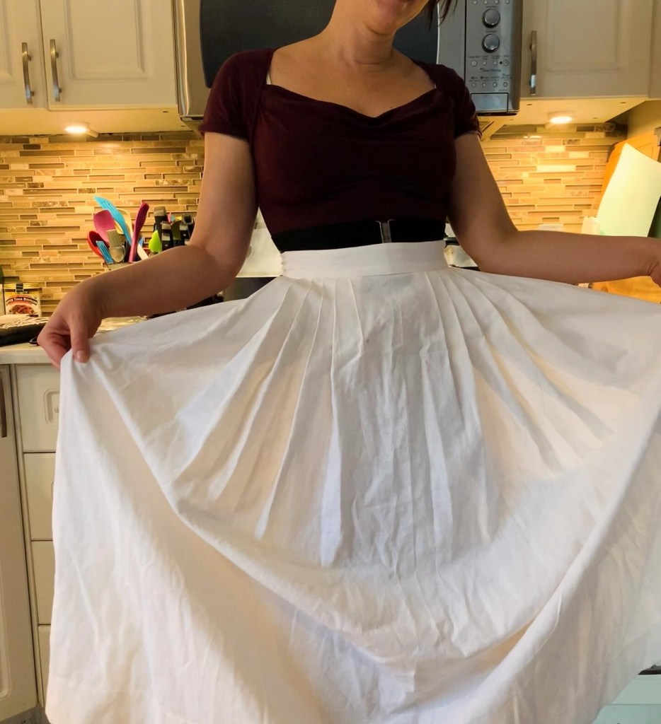 I understand the appeal of a bib but it makes me not want to put on an apron! I always find the strap around the neck annoying. So, I went without. Mostly I wanted something to wipe my hands on that isn’t my skirt. 😂