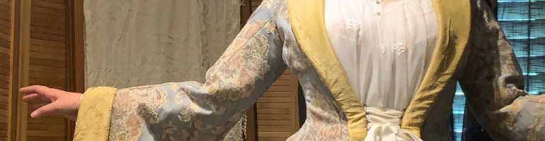 As I cut out my main fabric, it became tragically clear that I wouldn’t have enough for the Watteau pleating I so desperately wanted. However, some perusal of originals identified a few examples where the accent fabric was used to create the pleats, so once I had obtained my gold lining fabric I decided to use that. Initially I went with a full fabric width of pleating, because more is more, but eventually I decided that was just too much.