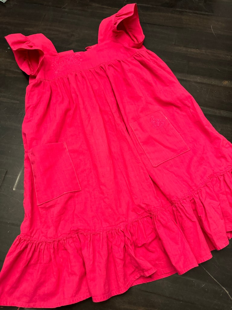 Also the button selection process was contentious. Tris was campaigning for purple buttons. I was looking for some cute little sugar skull buttons a friend gave me eons ago, that I think I may have foolishly destashed in last summer’s sewing room purge. In the end we settled on these sparkly white buttons. I didn’t have three in the larger size so the middle one is a bit smaller. Fortunately this dress is for Tris and she isn’t fussed.