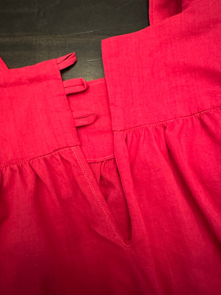 Now, I won’t say I followed all those instructions, but it’s lovely to have them. I spent a bit too much time trying to settle on the best way to line the bodice with the little ruffle sleevelets, which I originally thought were just shoulder ruffles but actually go all around the arm. In the end I did mostly follow the pattern, except for adding the button loops to the back instead of a zipper.