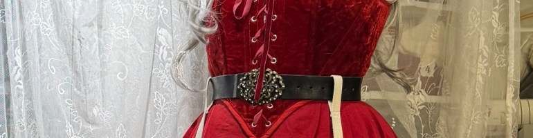I spent some time agonizing over the finishing, neutral silver grommets with red binding or vampiric black grommets and binding. In the end I went the neutral route, hoping for a more flexible garment, although it feels perhaps just a little Mrs Claus. It still pairs nicely with black so I’m mostly content though.