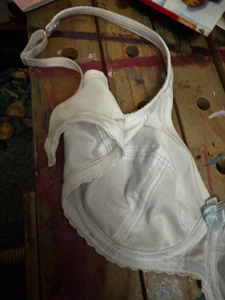 I also needed more room in the upper cup. We noticed this in the try-on stage, and Diane had added a bit of width there, but not quite enough, I guess. I will note that London has the upper cup finished with fold-over elastic, and cutting in in the upper cup is an issue I have had with every single RTW bra I have ever tried on with an elastic top edge. This is probably related to the thing where I can’t use full bust minus high bust to determine my cup size, as there’s very little difference there… my upper bust is broad, and with my breasts not being particularly dense or firm at this stage of my life, it’s very easy for an elastic to cut in.