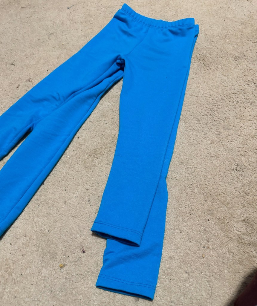 While making leggings is a bit underwhelming in terms of creativity, they remain pretty much the only thing it’s faster to sew than to shop for, and getting to choose nice beefy fabrics (the black are some kind of heavy cotton interlock and the blue are a super-stretchy French terry) and knowing they’ll reach the twins’ ankles is more than worth it.