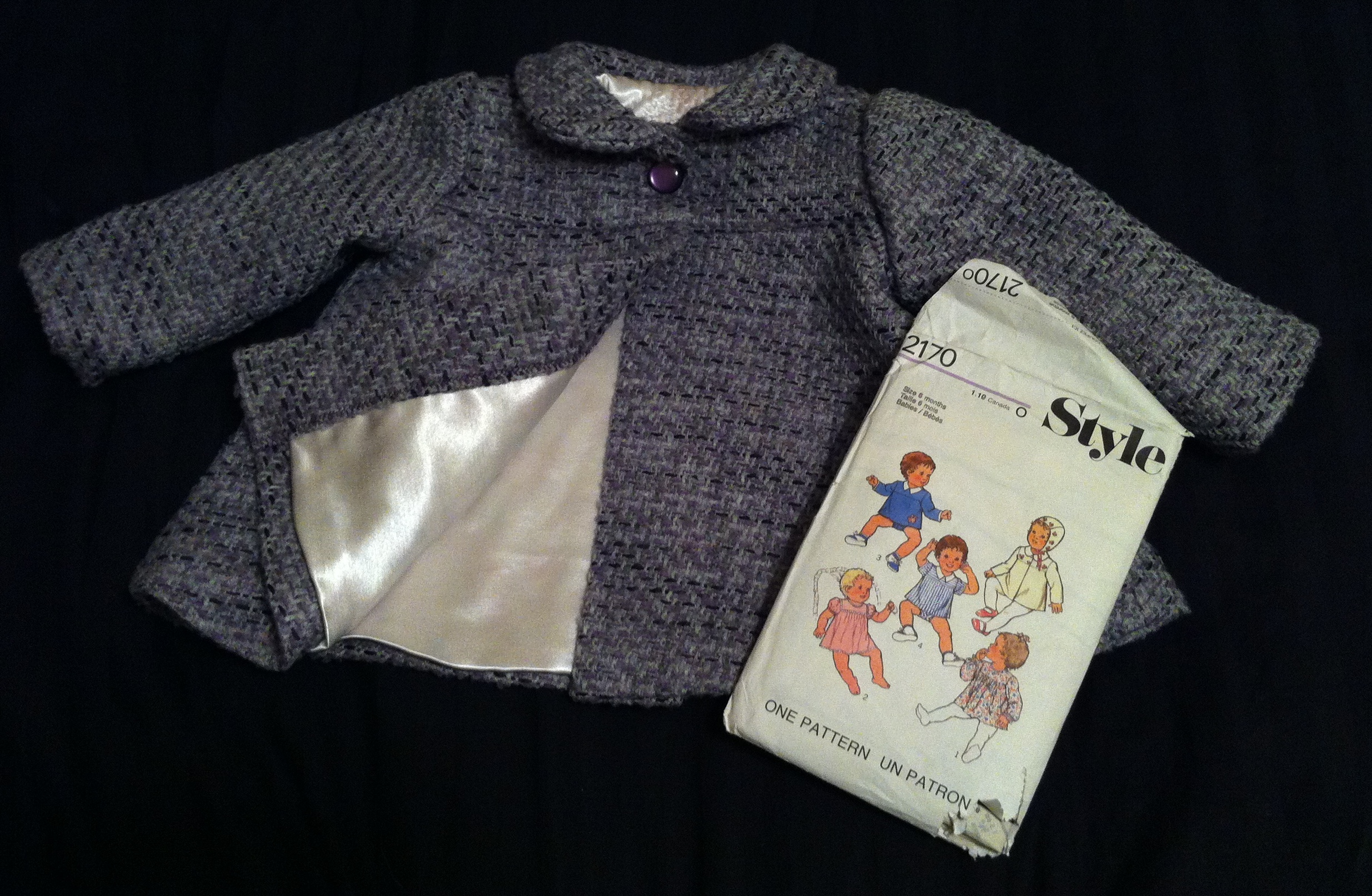 I have to say, much as I don’t love making baby clothes (they have such funny squooshy bodies, regular clothes really don’t make much sense, and they grow too quickly), I sure do love making coats. I love working with the heavy fabrics, I love the way they ease and press and even the fiddly things like turn of cloth. This was a pleasure to make just for how the fabrics handled, and it was so much quicker than a full-sized coat would’ve been.