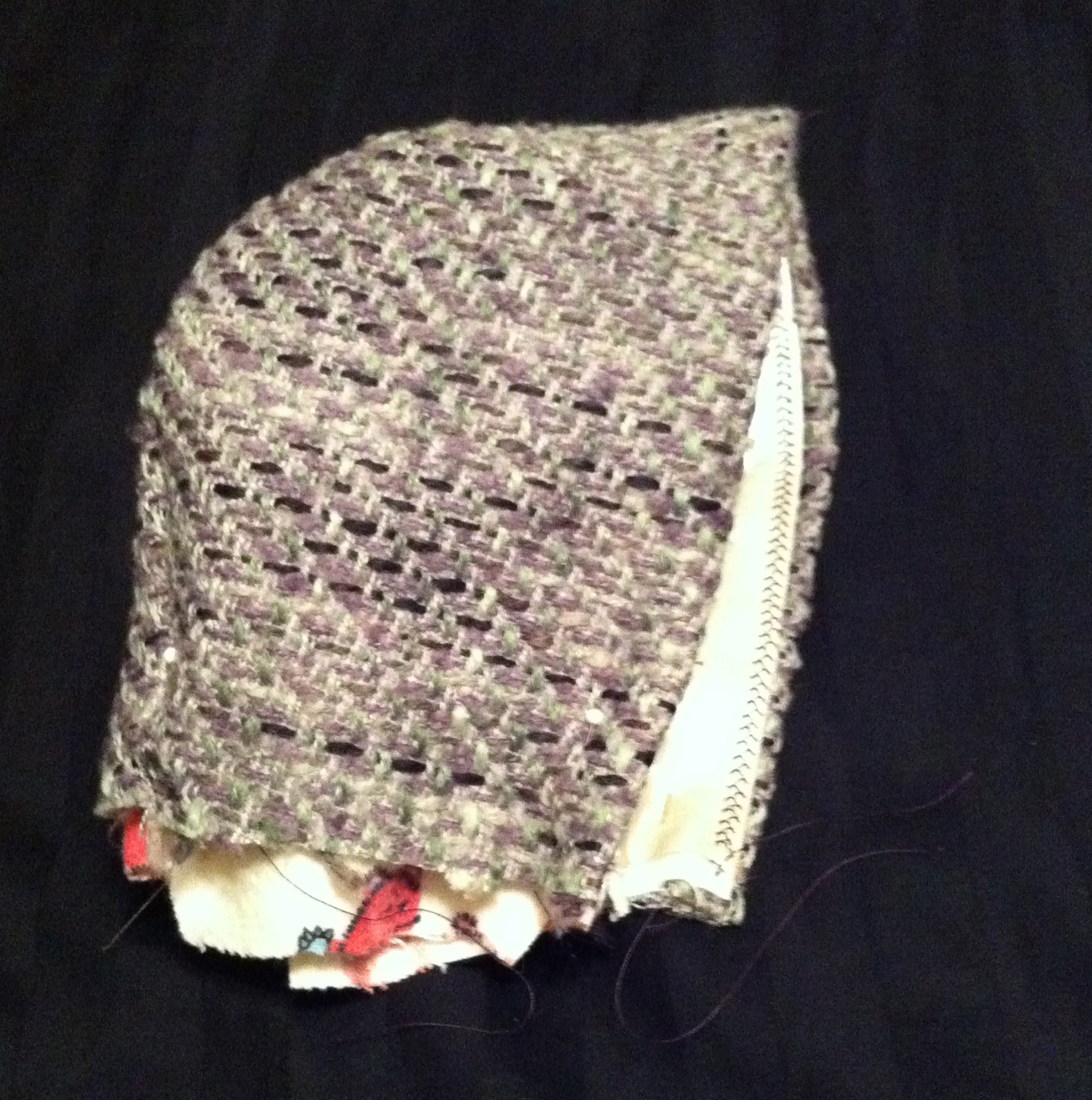 As you may have noticed, the pattern included an adorable bonnet. I was pretty excited about this, until I got it to this point, and looked at it, and realized that it was highly unlikely to actually fit, or cover anything enough to keep it warm if it did. So it went to the bottom of the queue and didn’t get finished. It would’ve been lovely, though.