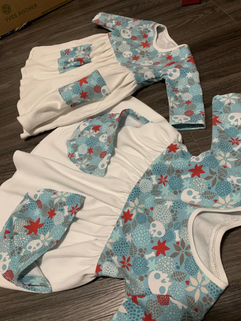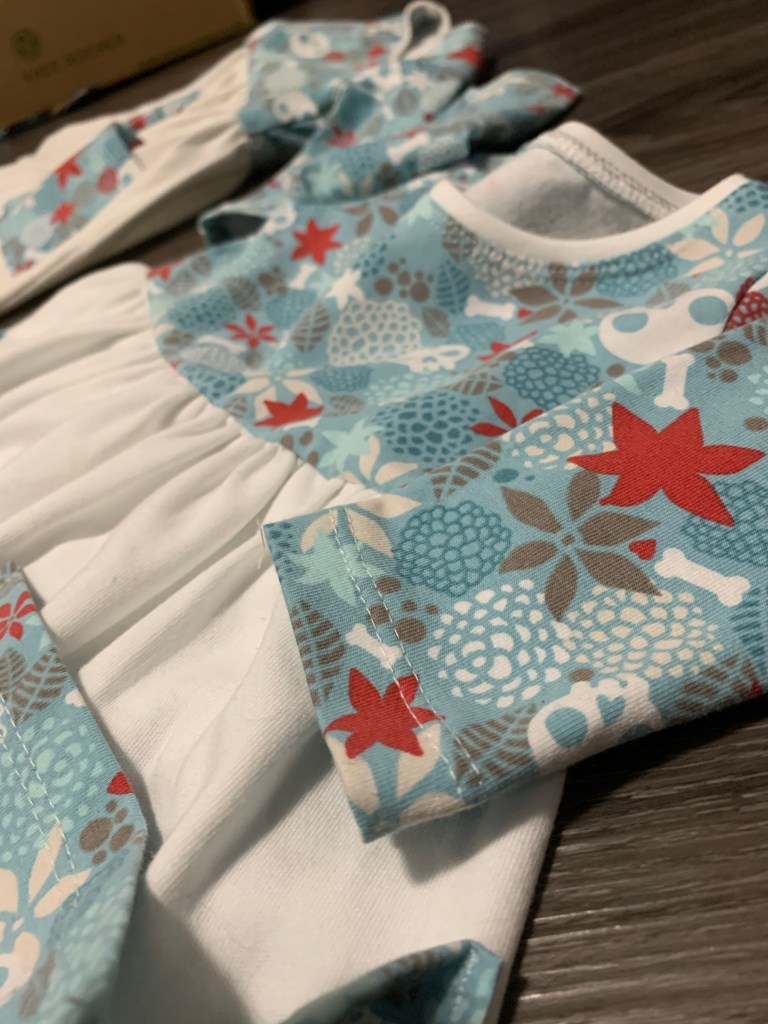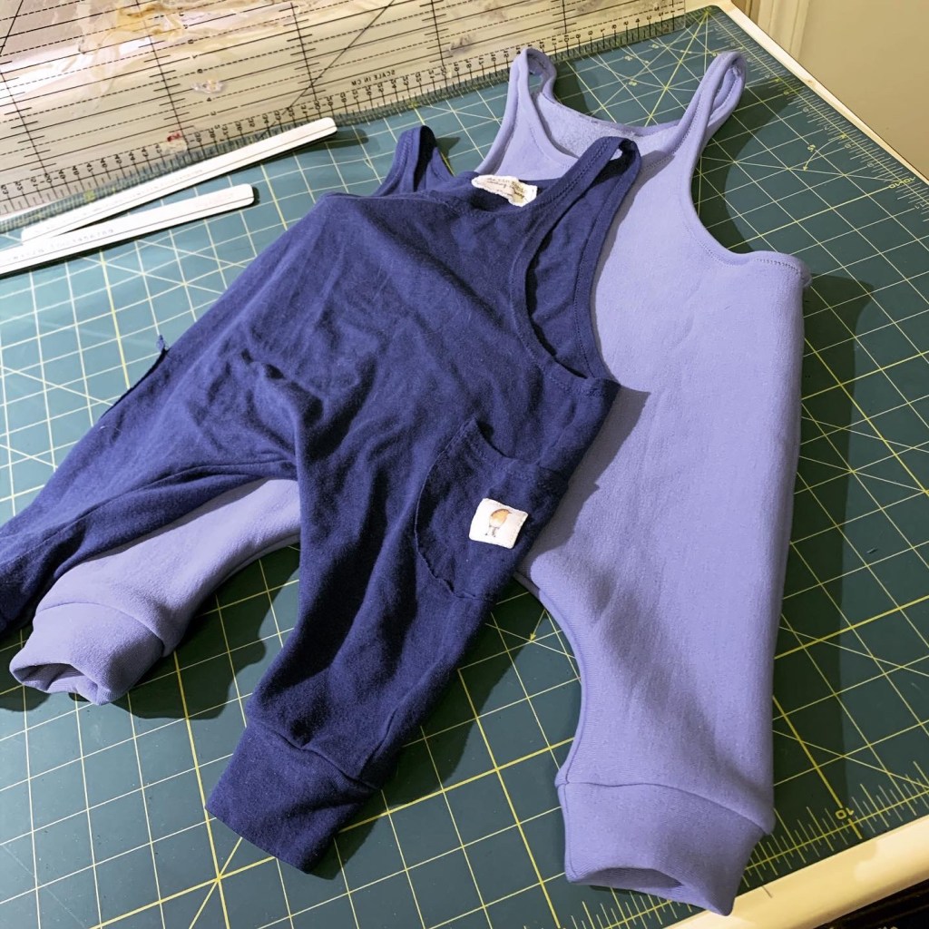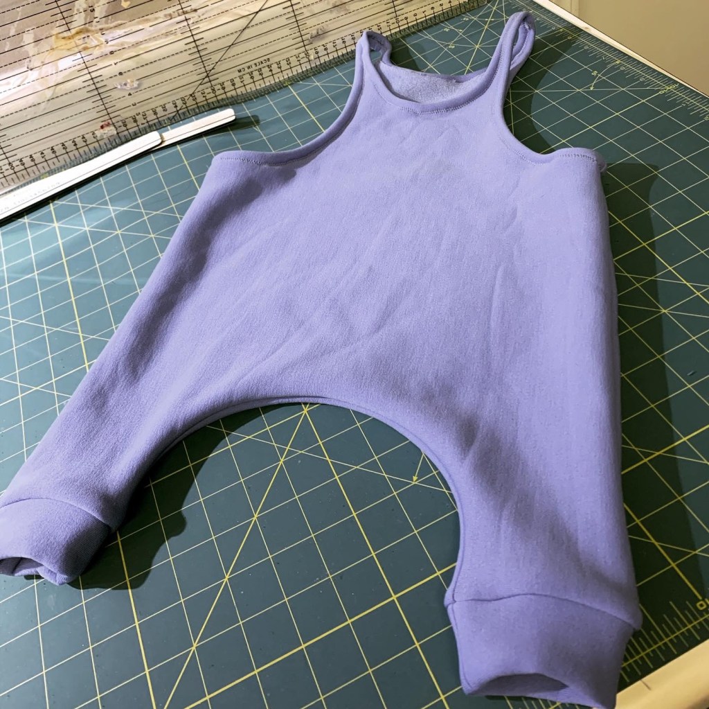 The hats were even more slapdash. I did Google “size 2 hat” to get a circumference for the band, but other than that I just kinda made it up. The circles are about 30” each since I cut 2 from a 60” wide fabric.