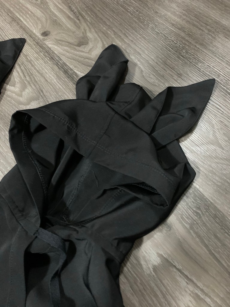 I decided I wanted them a little taller at the front than back, for a slouchy chef look, but not too high. I topstitched the foam to the inner part of the band fabric. I purposely made the foam a little short, and put a short elastic across the gap, so there’s some stretch at the back. I like how this turned out, but I wish I had made the bands just a little bigger. However, I suppose when they’re outgrown I could open up the back seam and add a little panel there, and just adjust the back couple of pleats to fit.