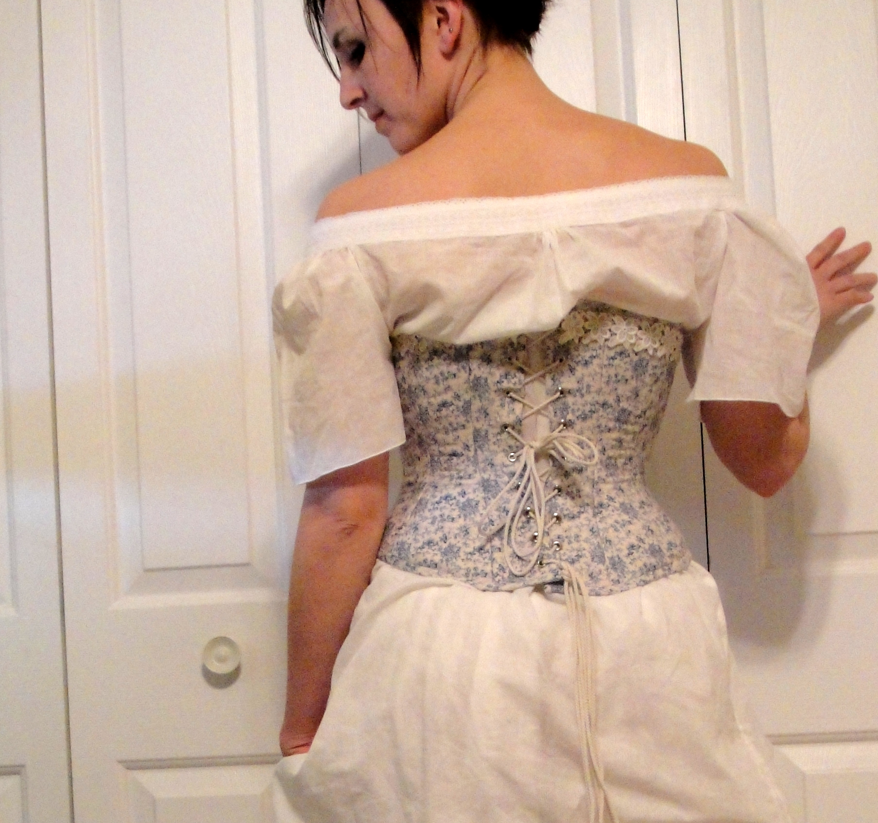 Remember when I did a mock-up for a corset? Yeah, me neither (well, barely.) I think it was last spring sometime? Anyway, finally this past weekend I had—wait for it—leisure time! Nothing that needed to be made with an instant deadline! (And my husband wasn’t playing Final Fantasy 14, which is also sapping the sewing time these days. I’m not gonna apologize for that, though, down-time is down-time and I love back-seat gaming.)