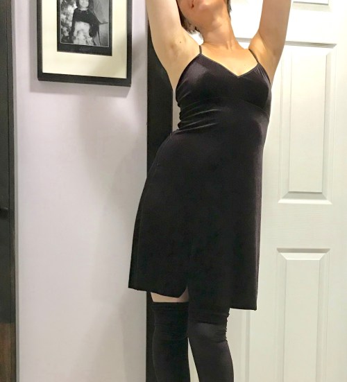And if I do say so myself, it looks considerably cuter on me than on my dress-form. The only problem is, it may be too cute to put clothes over top of. In which case I suppose I’ve made myself a new nightie, not a slip. I guess I might just have to make another…