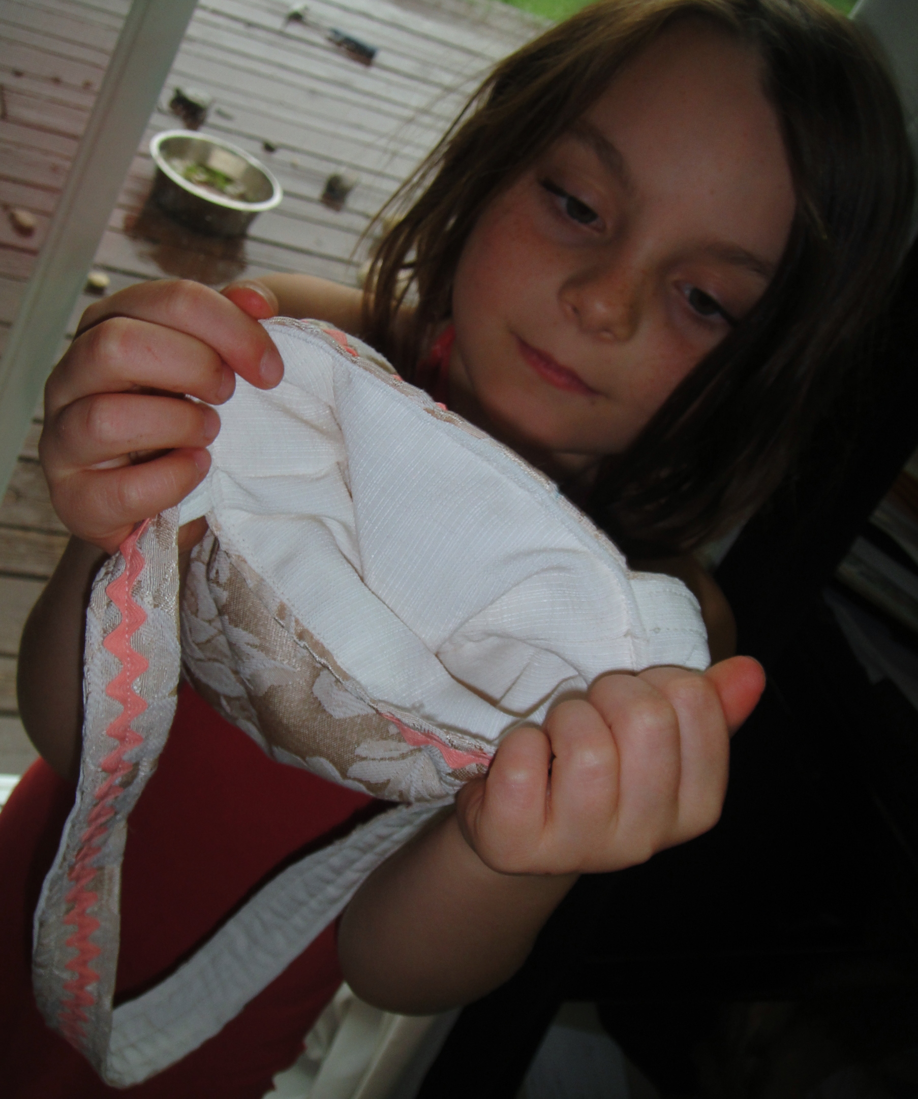 Ok, so I may be a little bit exuberant. Here’s the thing. She sewed this on her own. The only thing she asked me was whether she could use the machine (yes, dear, just don’t sew through your fingers, k?). No hovering, no planning, no supervising every seam-allowance and pivot and backtack.
