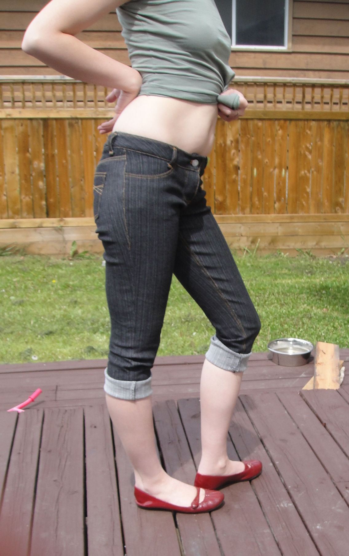 Tyo’s replacement capris are finished. Or is that Bermudas? My shorts terminology is lacking. Can I blame being Canadian? The Patrones magazine calls them “pirata,” which I think is totally awesome.