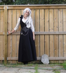 Me, I went as Susan Sto Helit, arguably the best female character in the whole Discworld (with exception of Granny Weatherwax, of course. And Lady Ramkin is pretty awesome also. Actually, there are lots of awesome females in that series…) I knew I wanted to cosplay her at some point as soon as I heard that Terry Pratchett, the author, had died earlier this year. He was one of my favourite authors, maybe my most favourite. His books are the most amazing blend of humour, wit, fantasy, and social commentary, and I will miss him terribly.