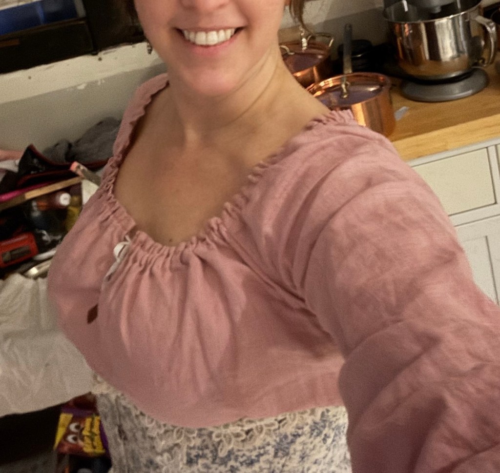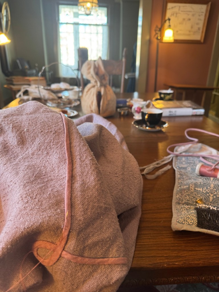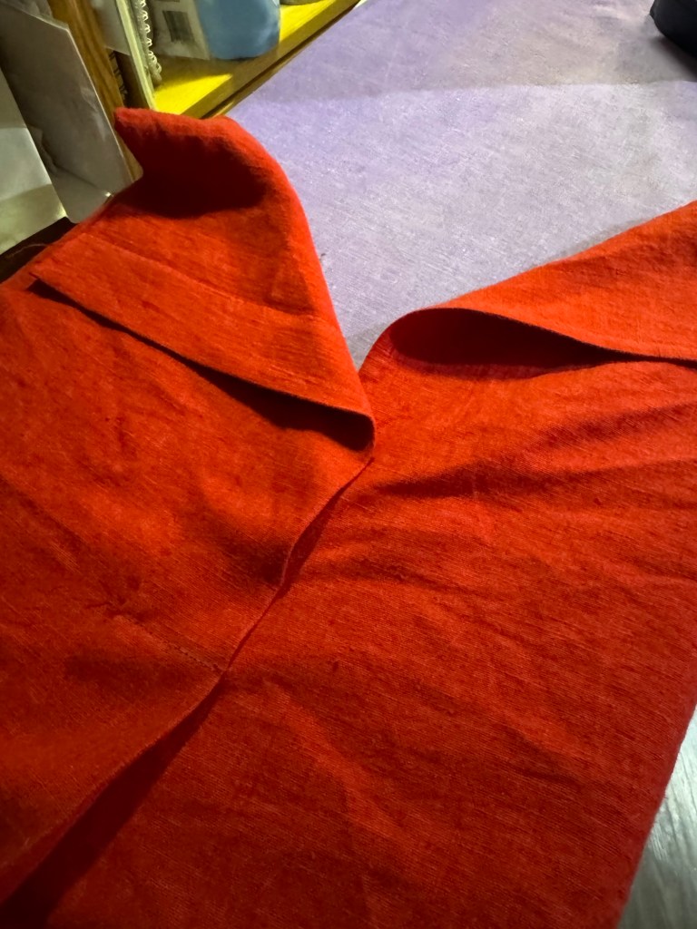 Then panicked that that was a bit too much and sewed with slightly skimpy seam allowances. But it seems to have worked out all right as I have a comfy 3”-ish lacing gap fairly evenly down the back. So I should be ok if it stretches a bit, or if I get bigger again this winter.