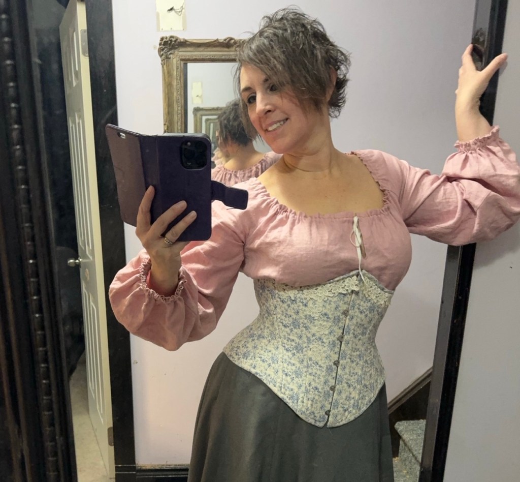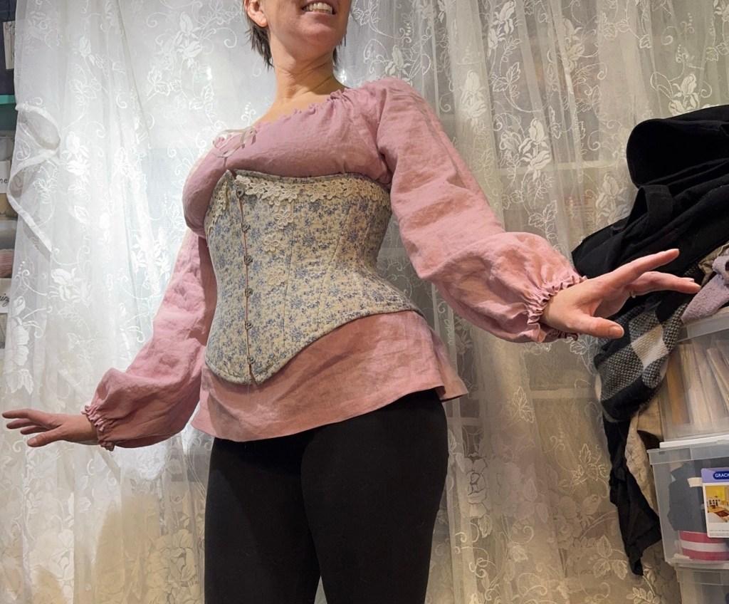I have finally gotten the hip shaping on this pattern just about perfect, I think, for my body at least. I had to tweak one side a tiny bit but I think that had more to do with imprecise sewing. I find I have more luck with corset fitting trying on the final version partly boned than I ever do fitting mockups.