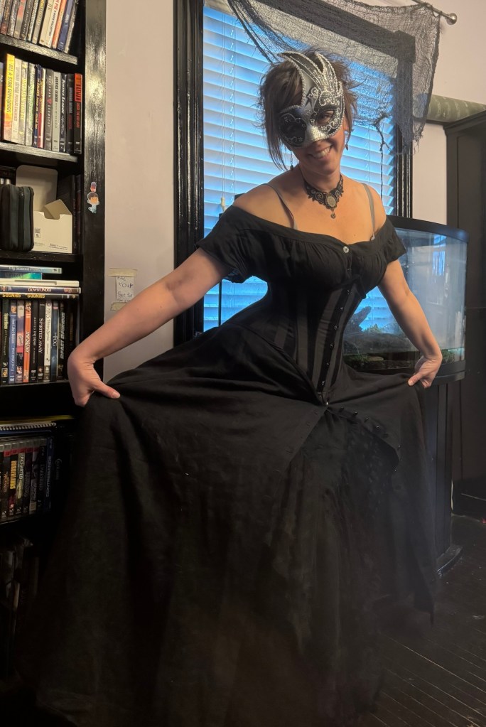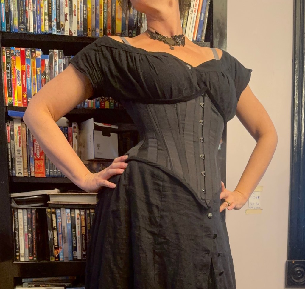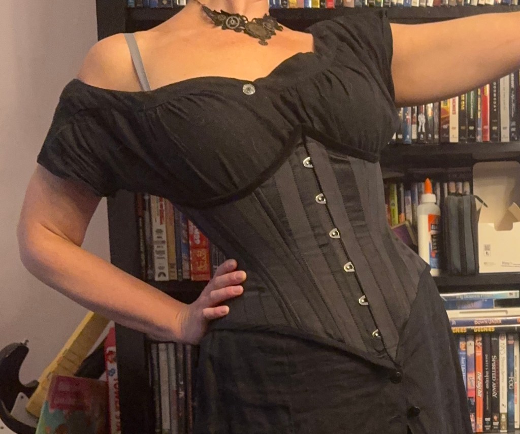 There were a few things that prompted this. One is that I’ve wanted a black underbust corset for, basically, ever. Well, technically I have one. Two, even, if you count this little Swiss waist, which is perhaps more of a boned belt. And I do wear the first one quite a bit, but a) it’s very sequiny and 2) it really, really doesn’t have enough hip spring (and never did).