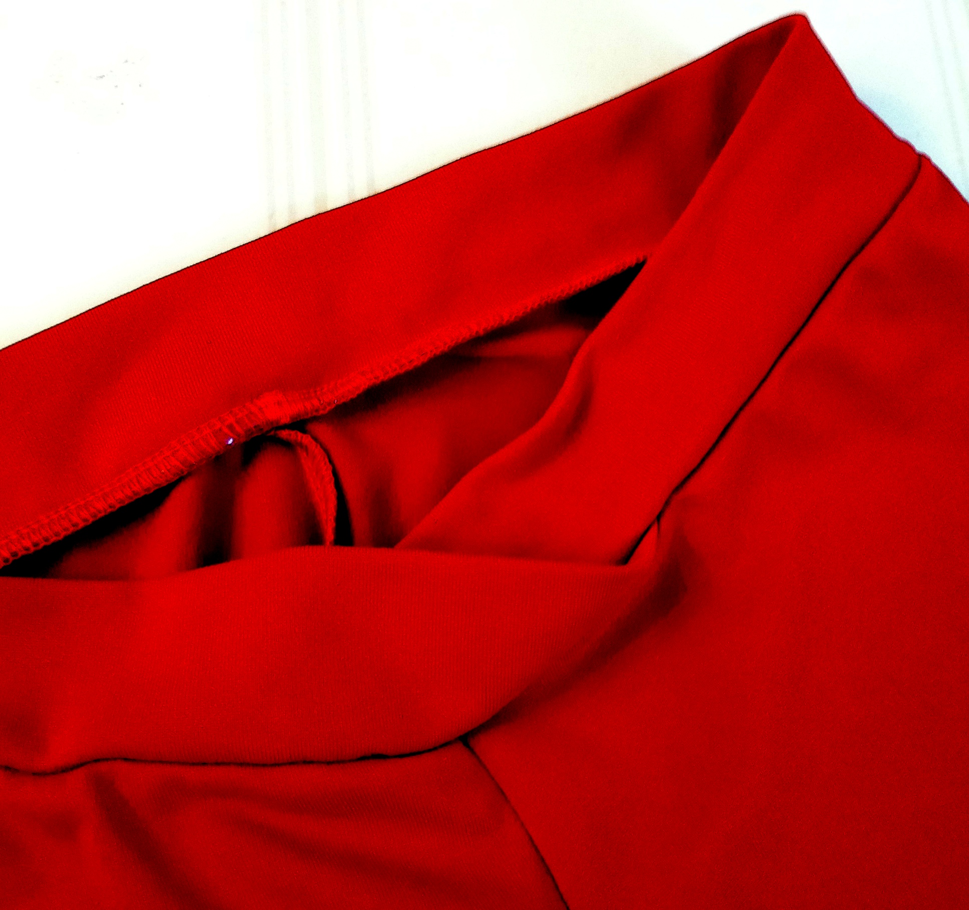 The biggest problem in the end was that the weight of the skirt pulled down on what is, essentially, a strapless knit dress. I’m not sure how we could anchor it better, however, as it’s hard to add a waist stay to a knit (power mesh panels?) without creating bulges.