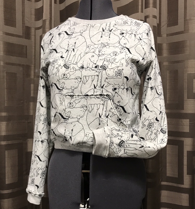 I wanted a slightly cropped length, partly just to use less fabric in this tester version, so I made it the length of the Extra Small size. This is still significantly longer than the sweater at the top of the post, and as it turned out, while it makes a short sweater, it’s not what I would call cropped.
