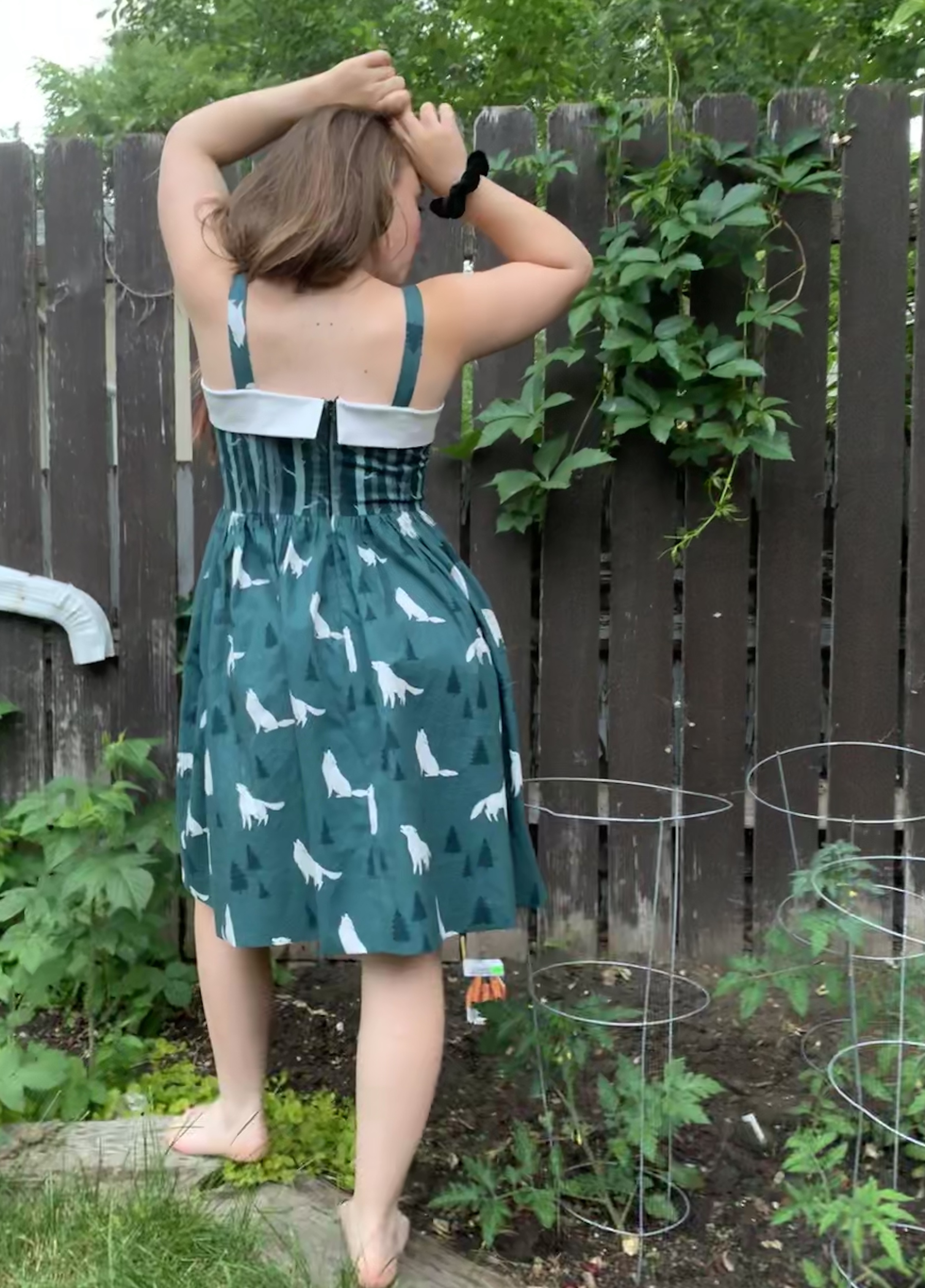 When I finally came back to it, I was able to get the zipper back into its track, only to promptly have it burst off again when I tried to put the dress on Syo. So I grumblingly unpicked the near-tooth row of stitching, and it seems to be working now, even if I’m not terribly trusting of it. And there’s that stripe of black in the back. I’m going to live with it. (Though I confess, I haven’t closed up the bodice lining yet, in case I do have to completely replace the zipper. Yeah, not laziness at all…)