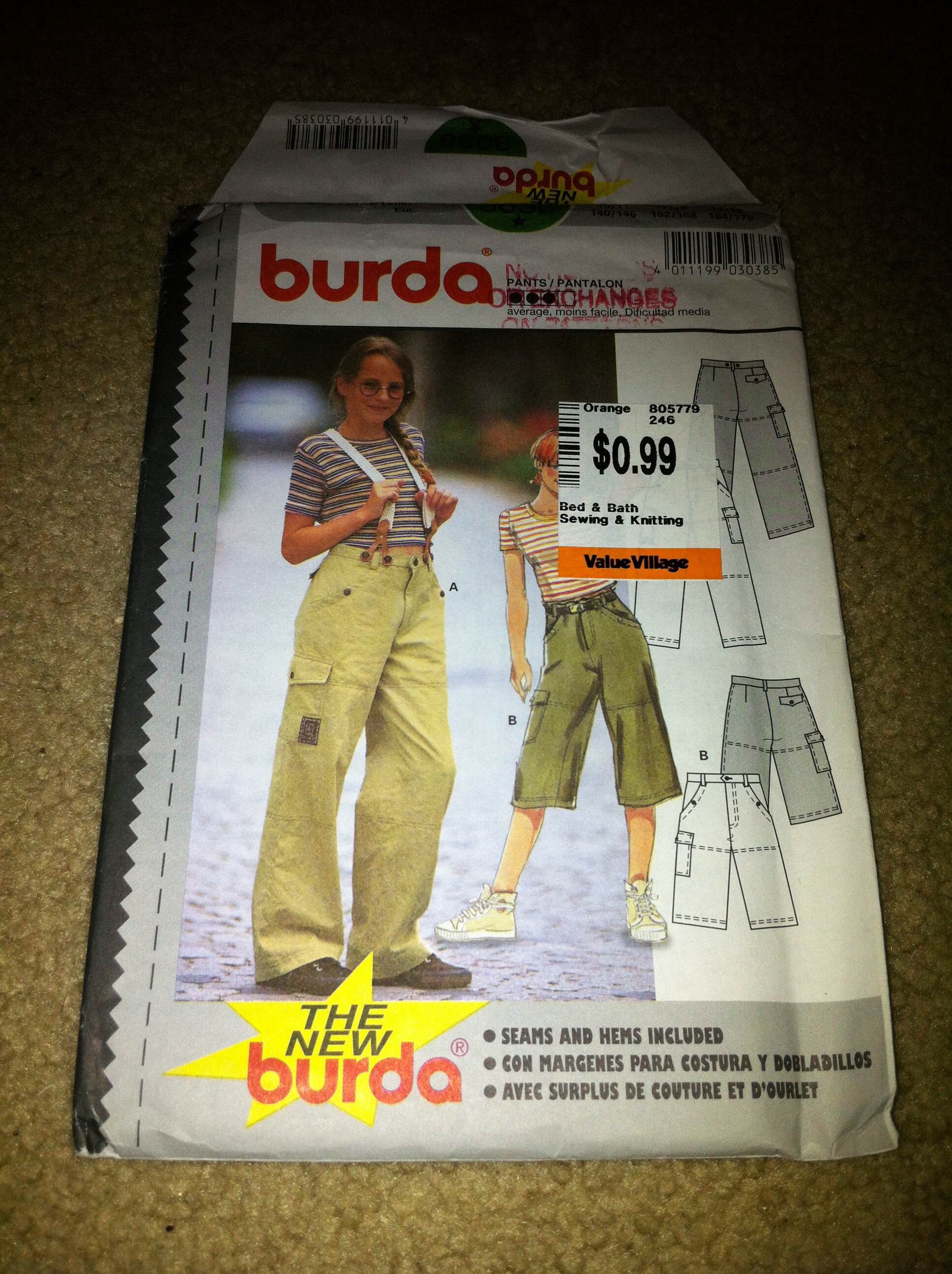 Anyway. Obviously plan B was in order. A further search turned up Burda 3038, above, which had all the required style elements—except that it’s a young junior size range. It goes up to a 37” hip, which is close, but, um, the drafting was definitely for a preadolescent body.