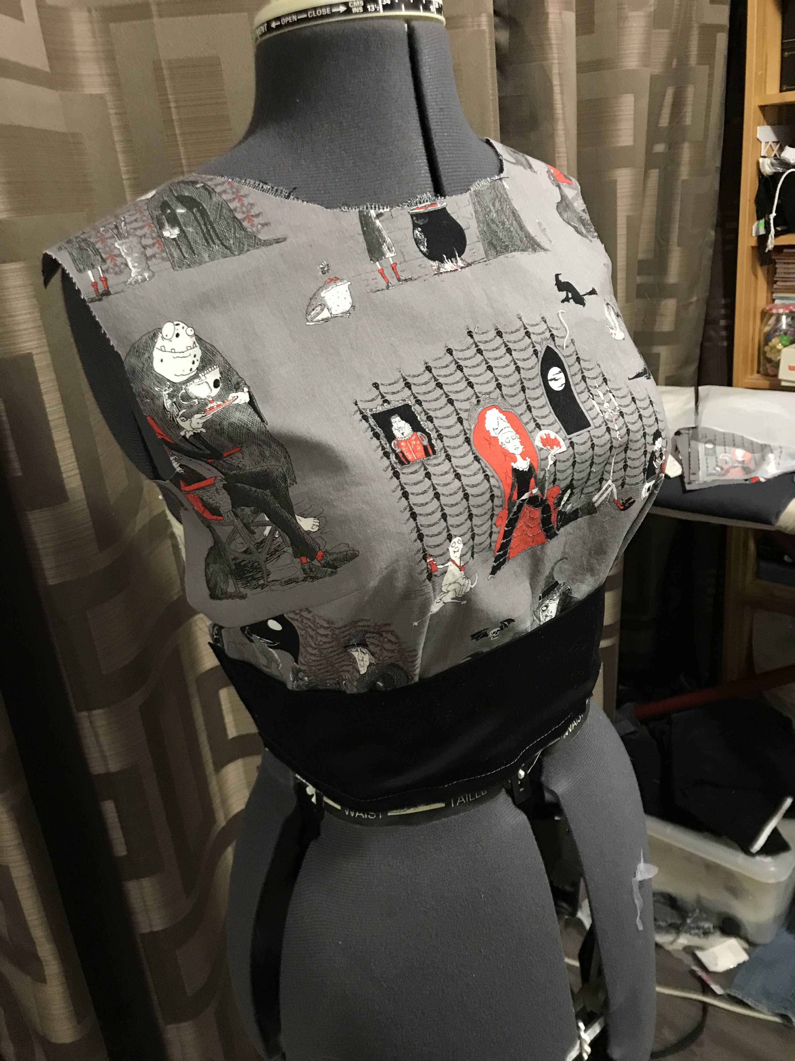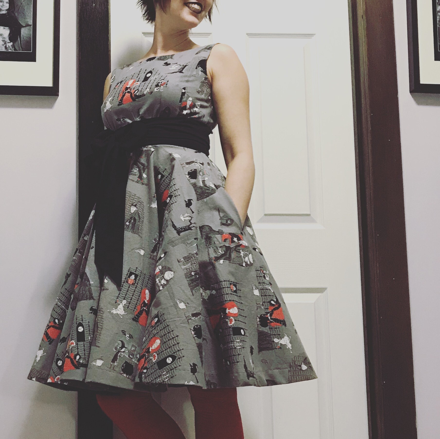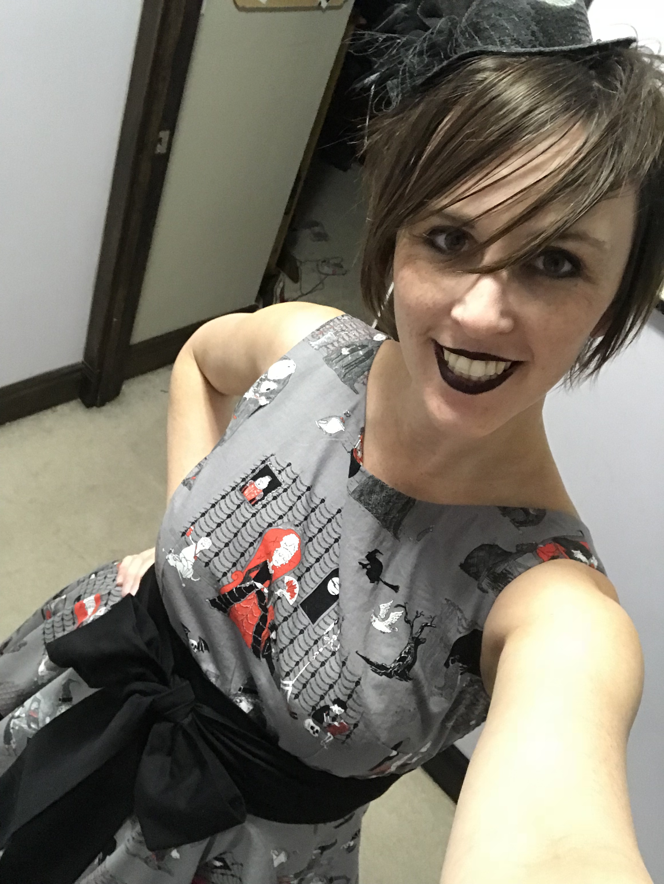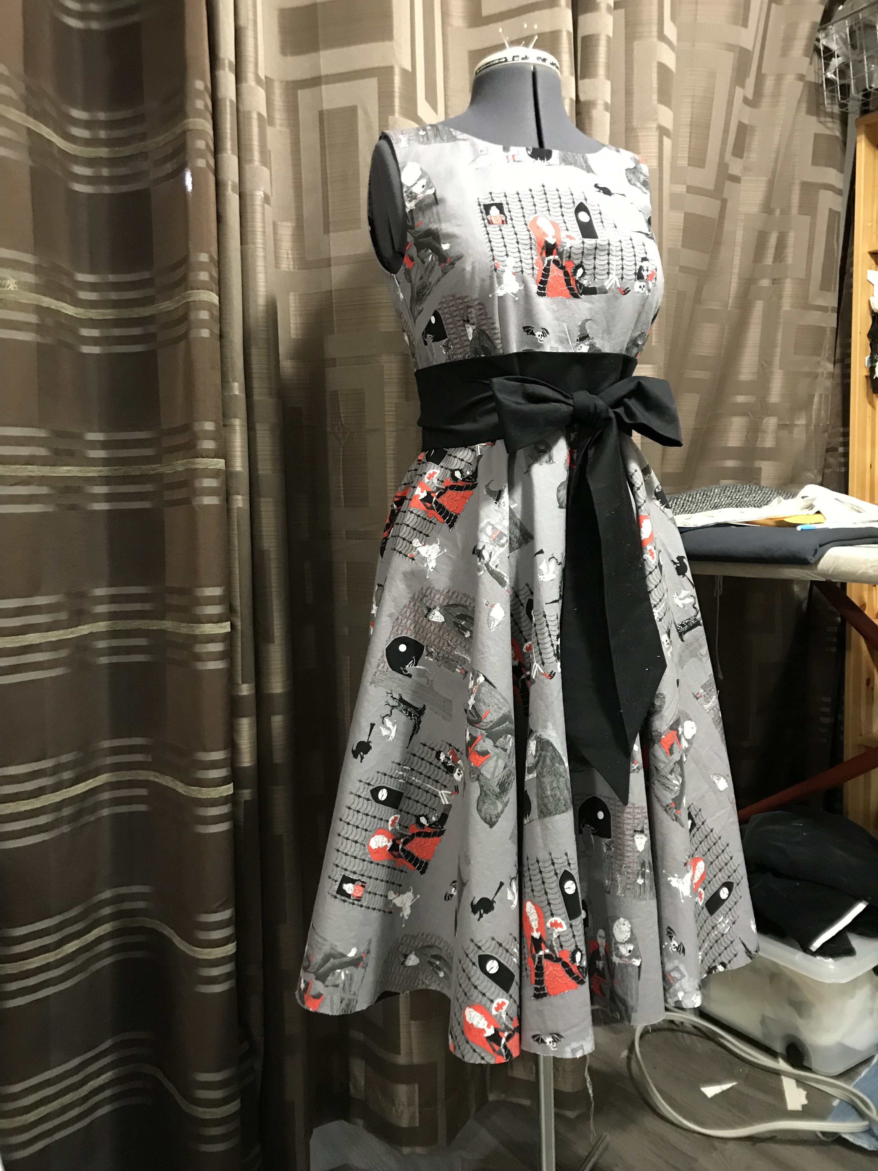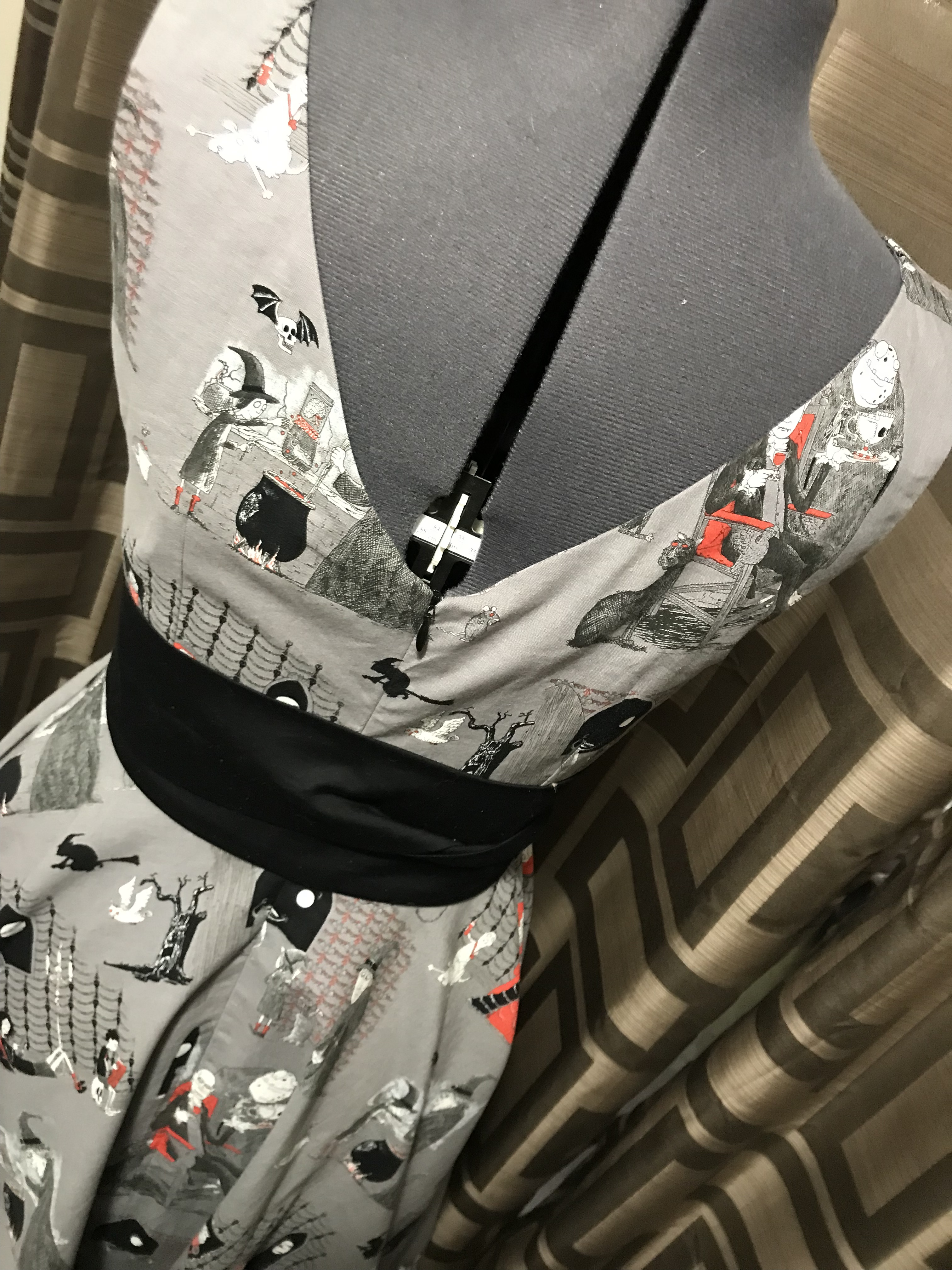 It’s certainly not my most outlandish or intricate Hallowe’en costume ever, but I was pretty happy with it—glad to get it made, but most especially proud of my construction. And my print matching. I might be crowing about that all month.