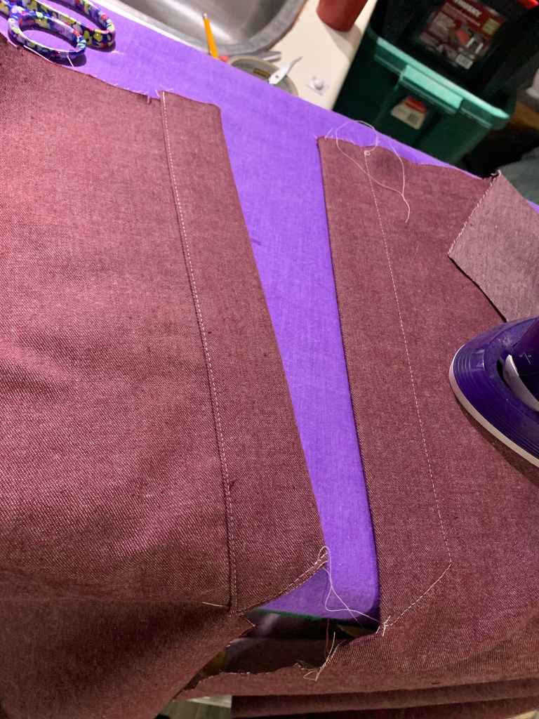 I also made a pocket, again very much following the same method I’ve used in the past. However, it somehow turned out too small. So I may need to open up the bottom of it and patch on some more. I also initially sewed it in upside down, because you’re never too experienced to make mistakes.